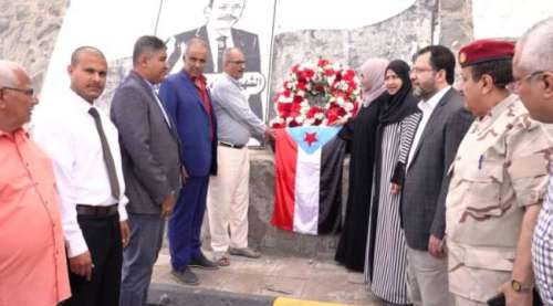 قيادات الانتقالي يضعون إكليل من الزهور على موقع استشهاد اللواء جعفر محمد سعد