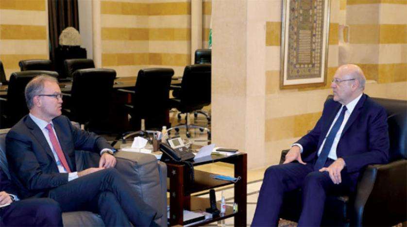 الرئيس نجيب ميقاتي خلال اجتماعه أمس مع رئيس بعثة صندوق النقد الدولي في لبنان