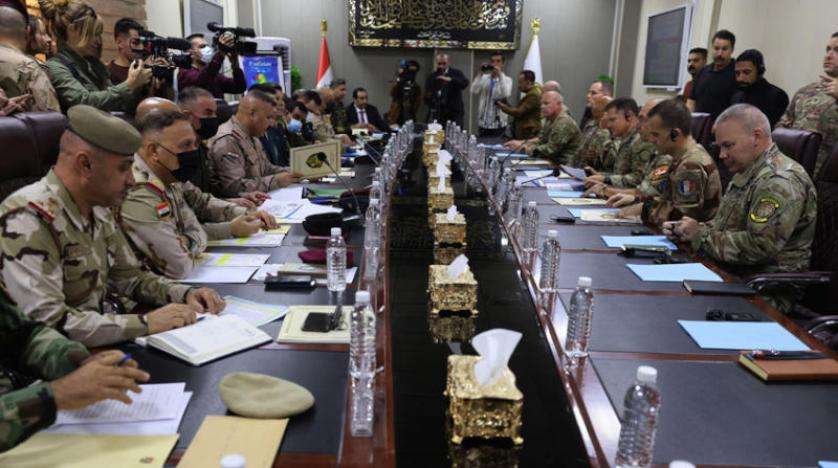 وناقش المجتمعون، طبقا للبيان، «السبل التي يمكن للقوات الأمنية العراقية أن تقوم من خلالها بتنسيق وتركيز الدعم المقدم من قوات التحالف وبعثة حلف شمال الأطلسـي لتطوير القدرات المؤسساتية والعملياتية للقوات الأمنية العراقية». وأعادت «الأطراف المجتمعة التأكيد على أن أفراد التحالف الدولي سيكونون موجودين بدعوة من الحكومة العراقية لتقديم المشورة والمساعدة والتمكين للقوات العراقية في تحقيق أهدافها لحماية الشعب العراقي والقضاء على داعش، وأن وجودهم يكون حصـرا وفق السيادة العراقية والقوانين والأعراف الدولية».