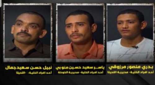 ونشر إعلام القوات المشتركة، مشاهد مصورة لاعترافات الأعضاء الثلاثة، أولهم المدعو بدري منصور مرزوقي، وهو من حارة يعقوب في مديرية التحيتا جنوب محافظة الحديدة، وكان يعمل في ورشة لحام في التيحتا قبل أن ينقل عمله للخوخة ليكون الغطاء الذي يتدثر به لتنفيذ المهمة الاستخباراتية التي كُلف بها من قبل مليشيا الحوثي الإرهابية.