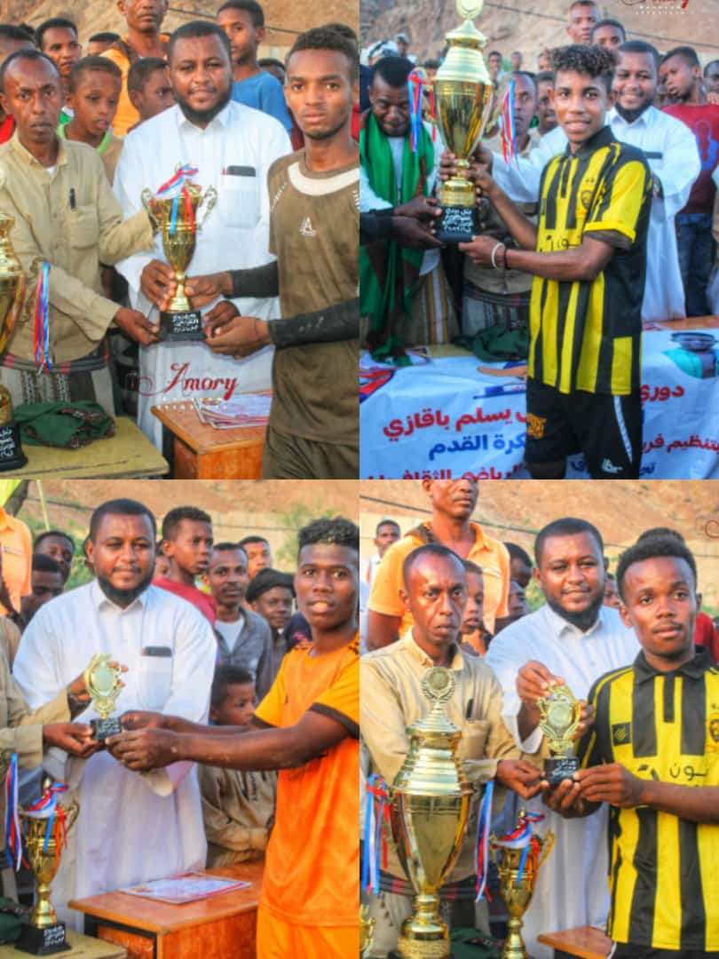 احرز فريق الاتحاد الرياضي بمنطقة الرياض بمديرية حجر محافظة حضرموت بطولة دوري الفقيد / خليل يسلم باقازي بعد تغلبه في المباراة النهائية التي جرت على ملعب الفقيدين بمنطقة الحصين على فريق الوحدة الرياضي بالجول بهدفين لهدف..
