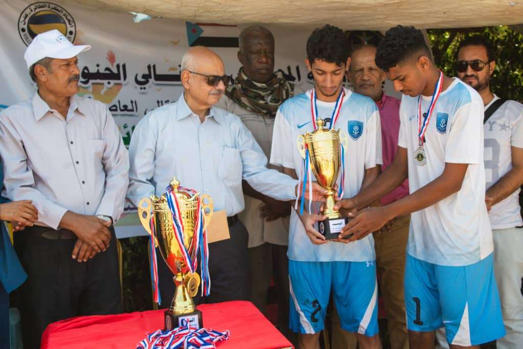 وسلم عصام بمعية، رئيس اتحاد الكرة الطائرة بالعاصمة عدن، الأستاذ سامي الحريبي، مدير إدارة الأنشطة المدرسية، كأس بطولة الكبار والميداليات الذهبية لكابتن ولاعبي فريق الميناء «ب»، فيما تسلم فريق المنصورة «ب» كأس وميداليات البطولة لفئة الشباب.