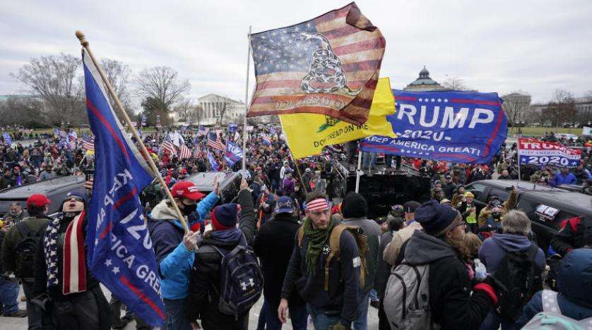 متظاهرون مناصرون للرئيس الأميركي السابق دونالد ترمب يتجمعون أمام مبنى الكابيتول في واشنطن