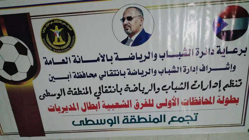اقرت ادارة الشباب والرياضة بالهيئة التنفيذية للمجلس الانتقالي محافظة أبين انطلاق بطولة المحافظة للفرق الشعبية ابطال المديريات، وذلك في اللقاء الذي ترأسة الأستاذ عبدالرقيب السنيدي مدير ادارة الشباب والرياضة ، وبحضور أعضاء اللجنة المنظمة والاشرافية في البطولة التي تقام برعاية دائرة الشباب والرياضة بالأمانة العامة والتي يشارك فيها ابطال مديريات المحافظة.