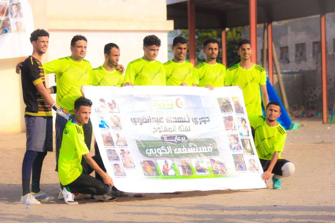 أستطاع عصر اليوم فريق نجوم الفيوش من محافظة لحج ألفوز على منافسة فريق شباب عبدالقوي بمديرية الشيخ عثمان بستة أهداف دون مقابل وذلك في إفتتاحية دوري شهداء عبدالقوي لفئة المفتوح والتي تقام برعاية مستشفى الكوبي وبدعم من الاخ ياسر الناصري ، والتي تقام على ملعب مدرسة الفجر للتعليم الأساسي بالشيخ عثمان وتحت أشراف الكابتن صلاح النخعي واللجنة المشرفة بقيادة الاستاذ عبدة الصبيحي