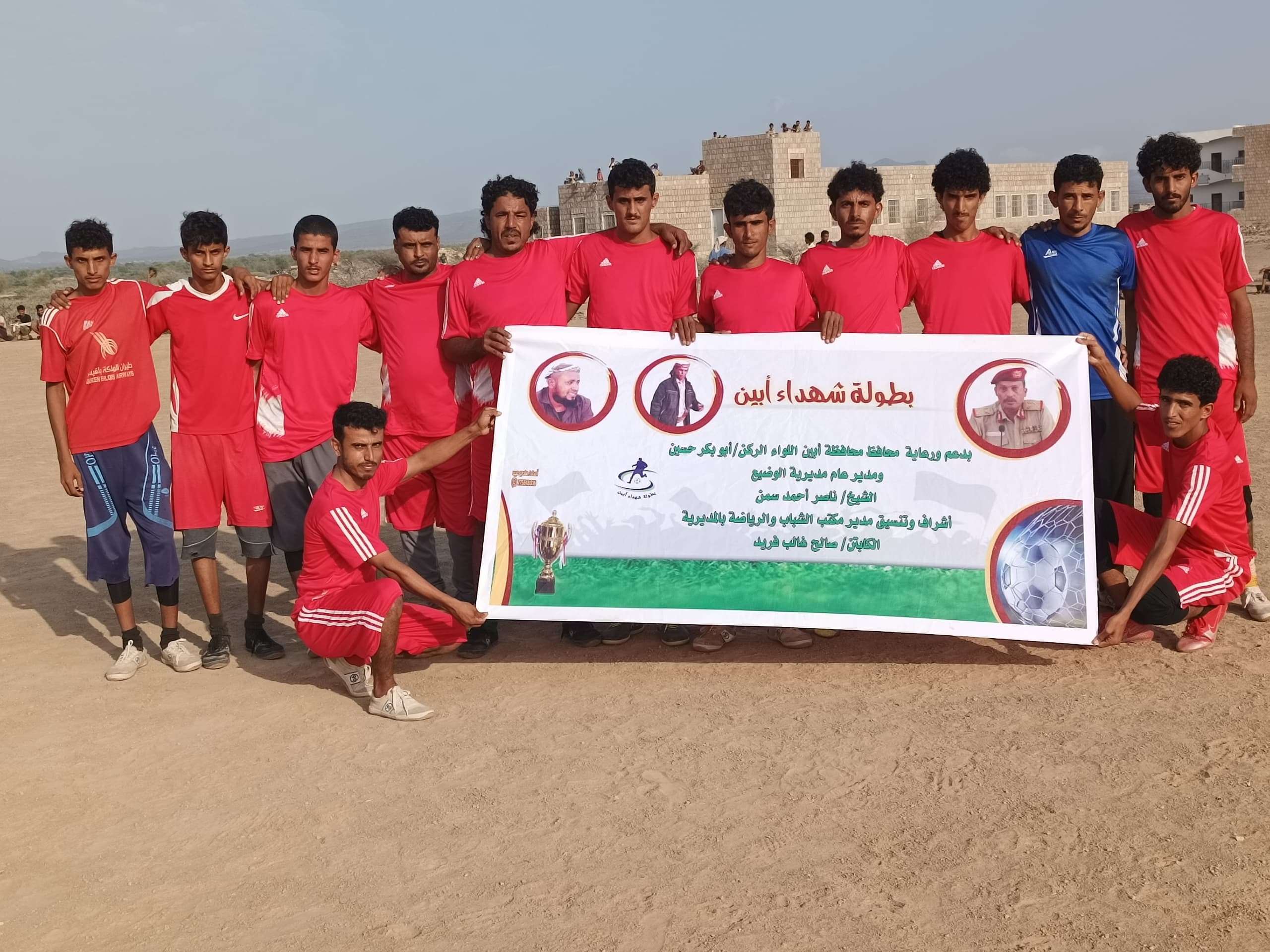 بثلاثة أهداف نظيفة استطاع فريق عواصف حبيل المسجد التغلب على نظيرهم فريق القشيعة الرياضي ضمن منافسات الدور الأول لبطولة شهداء أبين للفرق الشعبية بمديرية الوضيع والتي تقام نسختها الأولى برعاية محافظ محافظة أبين اللواء الركن أبو بكر حسين سالم وبدعم وأشرف السلطة المحلية بالمديرية ممثلةٍ بالشيخ ناصر أحمد سُمّن وبتنظيم من قبل مكتب الشباب والرياضة بالمديرية ممثل بالاخ صالح غالب والتي تقام بمشاركة 40 فريقاً شعبياً بنظام خروج المغلوب من مرة واحدة.