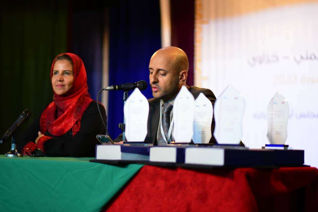 تشاركت د. "الكوكباني" مع السيد/ عُمر الحيمي مدير إدارة تطوير الأعمال في البنك، في توزيع جوائز السرد اليمني "حَزَاوِي" على الفائزين في النسخة الثانية، وذلك في حفل خطابي تكريمي، احتضنته قاعة المركز الثقافي في مدينة صنعاء، بحضور شخصيات عامة ومهتمة بالأدب والثقافة.
