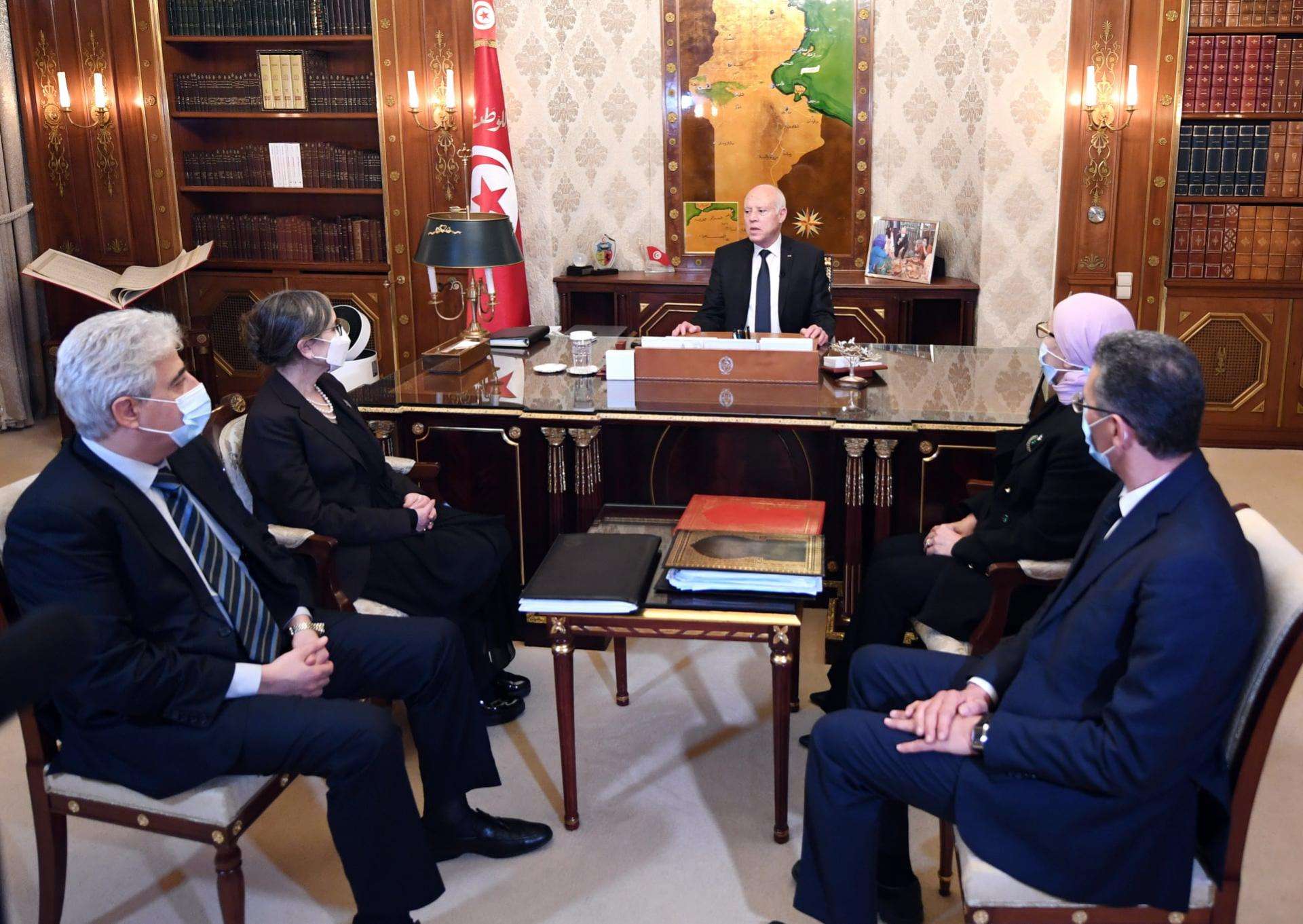 جاء ذلك في كلمة ألقاها خلال لقاء جمعه، برئيسة الحكومة نجلاء بودن رمضان، ووزراء العدل ليلى جفال، والدفاع الوطني عماد مميش، والداخلية توفيق شرف الدين، بثتها الصفحة الرسمية لرئاسة الجمهورية عبر "فيسبوك".
