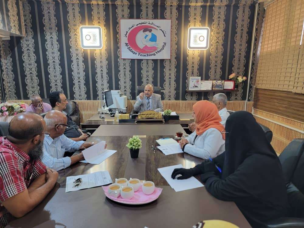 وخلال الزيارة أجتمع د.احمد البيشي مع مدير عام مستشفى الصداقة د.رجاء احمد ومدير عام الإدارة العامة للجودة ومكافحة العدوى بوزارة الصحة د.امين سلمان و سكرتير اللجنة الطبية في مكتب الصحة بالعاصمة عدن د.طارق الشعبي و نائب مدير عام المستشفى د.سامي باوزير و مسؤولي الشؤون القانونية والجودة في مكتب الصحة بالمحافظة ومستشفى الصداقة ، ومدير إدارة المساهمة الصحة بالمحافظة عبدالباري مقبل.