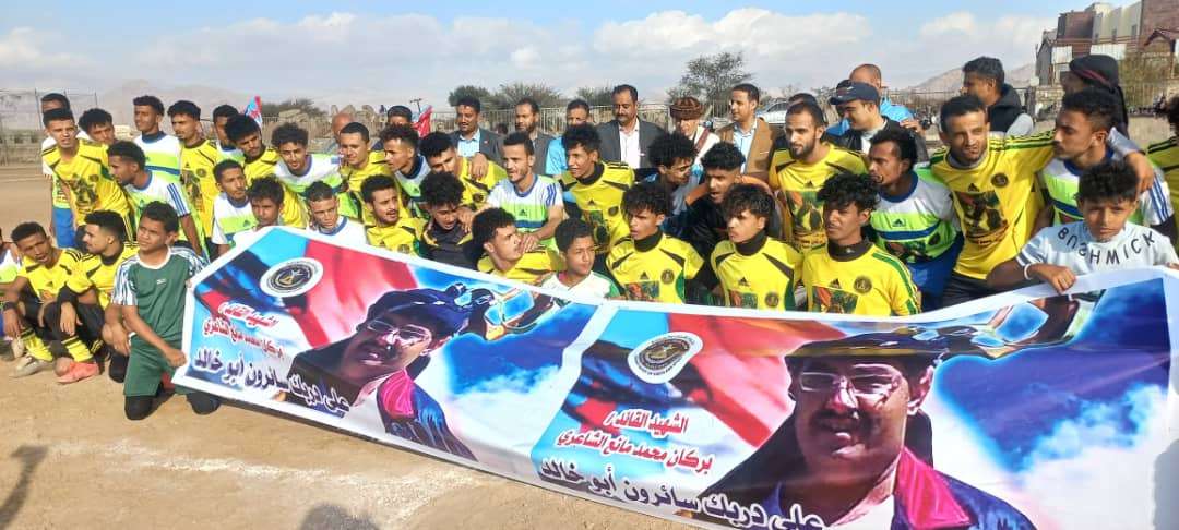 وسط أجواء احتفالية رياضيه خلد فيها ذكرى استشهاد بطل من ابطال الجنوب الميامين الشهيد القائد/ بركان محمد مانع الشاعري بذكراة العاشرة وبهذه المناسبة التي احتضنها ملعب النصر في ساحة الشهداء بجليلة الضالع على كأس الذكرى بين النصر والصمود برعاية ادارة الشباب والرياضة بالأمانة العامة للمجلس الانتقالي الجنوبي وبالتنسيق مع مكتب الشباب والرياضة وادارة الشباب والرياضة بانتقالي الضالع وإدارة الشباب والرياضة بانتقالي مديرية الضالع وشهدت حضور جماهيري غفير لمحبي ورفاق الشهيد وعشاق كرة القدم وفي طليعتهم المناضل/ عبدالله مهدي سعيد رئيس المجلس الانتقالي الجنوبي بالضالع و وفد ادارة الشباب والرياضة بالأمانة العامة القادم من العاصمة عدن برئاسة كنعان الكريحي رئيس اداره الشباب والرياضة بالأمانة العامة للمجلس الانتقالي الجنوبي وغسان قزة مدير عام مكتب الشباب والرياضة بالمحافظة ومطلق المعكر عضو الجمعية الوطنية مدير إدارة الشباب والرياضة بالمحافظة ومدير عام مديرية قعطبة بكر مانع الشاعري والكابتن خليل العلوي رئيس اتحاد الرياضة للجميع وسمير صالح رئيس اتحاد الكرة بالمحافظة والاستاذ علي الجعدي رئيس لجنة الحكام بالمحافظة والنجم والمدرب السابق لنادي نصر الضالع الكابتن صالح الصباري وعدداً من قيادات المجلس الانتقالي والاتحادات الرياضية بالضالع ونخبة من الاعلاميين لعدد من الوسائل الاعلامية المقروءة والمرئية