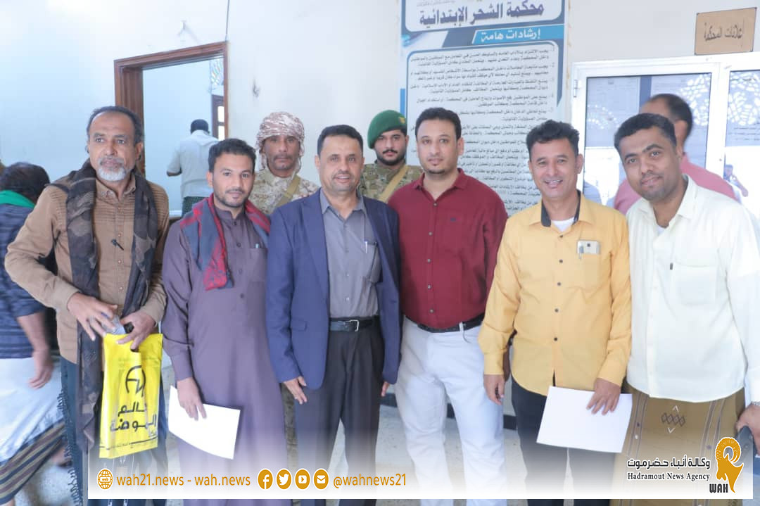 نظمت نيابة مديرية الشحر الابتدائية، حفل توديع لوكيل النيابة السلف القاضي فؤاد جابر لرضي، بحضور وكيل النيابة الخلف القاضي الدكتور حسن محمد القرزي وجميع الاعضاء والموظفين الإداريين بالنيابة.