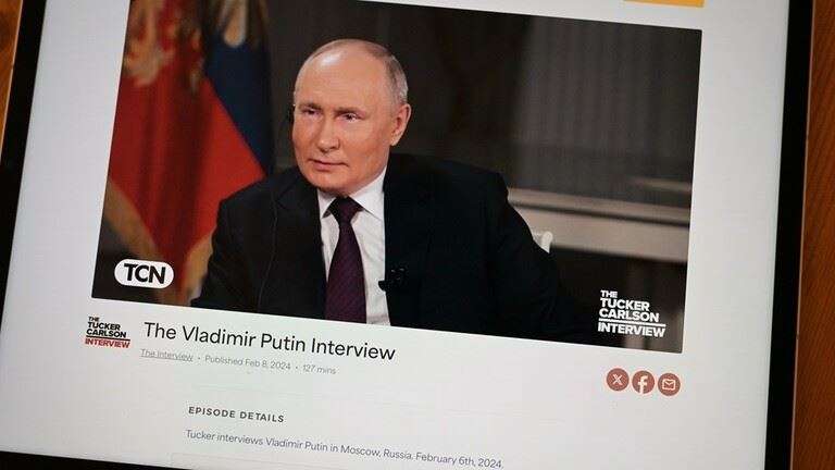 وقد نشر الصحفي الأميركي تاكر كارلسون مقابلة مع الرئيس الروسي فلاديمير بوتين في صفحته الرسمية على شبكة الإنترنت، ثم بصفحته الرسمية على موقع التواصل الاجتماعي X ليلة 9 فبراير/شباط، كما ظهر تسجيل فيديو للمحادثة على موقع الكرملين على الإنترنت.