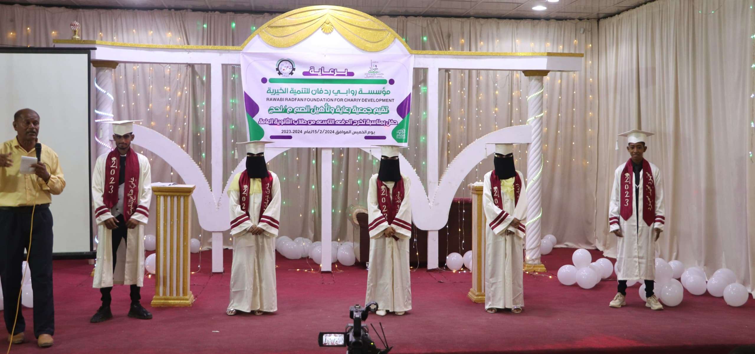 بدعم كريم من مؤسسة روابي ردفان للتنمية الخيرية احتفلت جمعية رعاية وتأهيل الصم بمحافظة لحج صباح اليوم الخميس بحفل تخرج الدفعة التاسعة من طلاب الثانوية العامة.