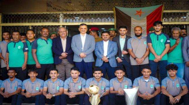 وعبر خلال استقبال الفريق، عن تهانيه للاعبين والجهاز الفني والإداري، مشيدا بتتويجهم بلقب دوري عدن الممتاز للمرة الثانية على التوالي.