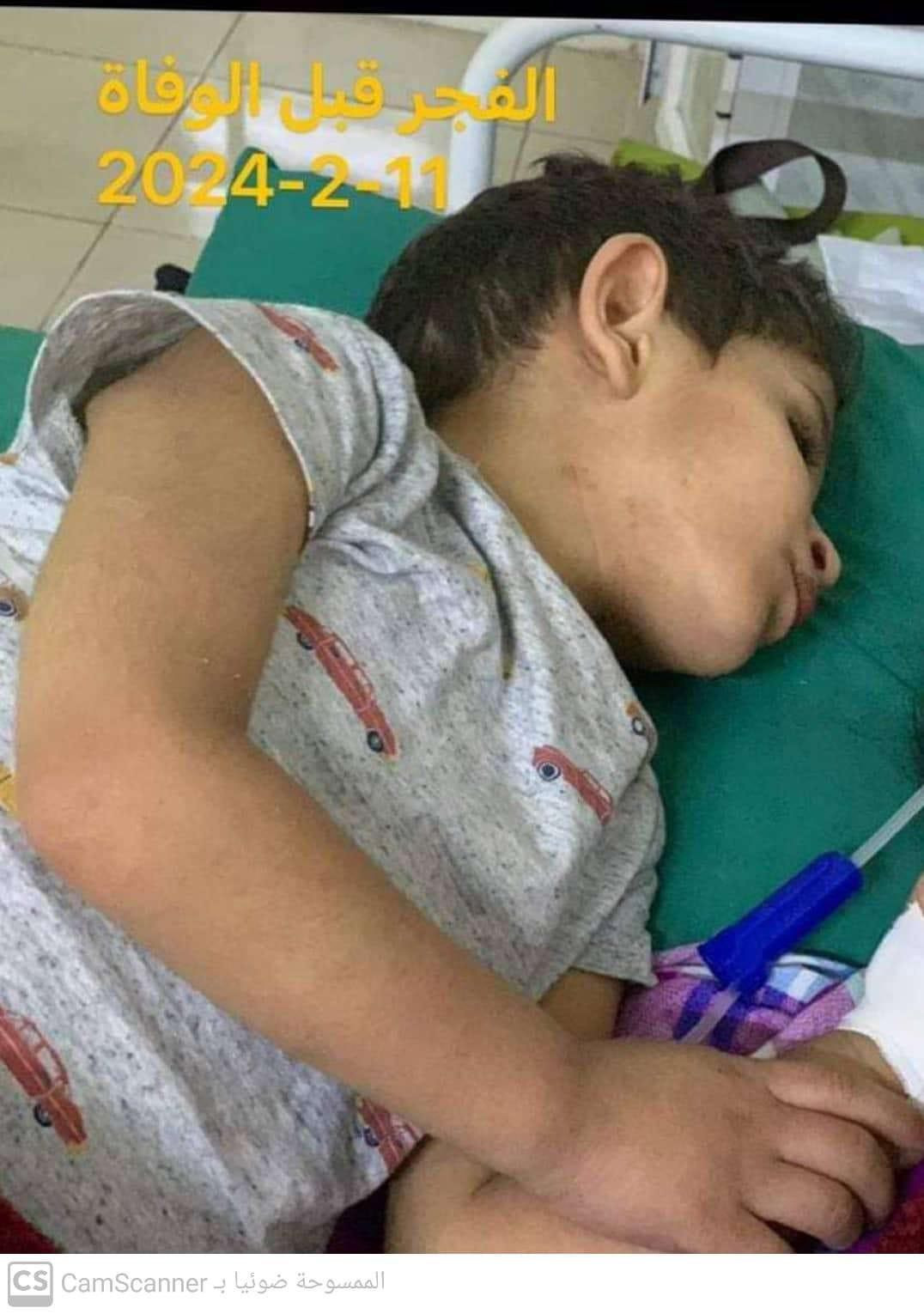 عبدالعزيز البالغ من العمر ثلاث سنوات مرض علينا في تاريخ 30-1-2024 و أخذناه إلى أحد المستشفيات في العاصمة عدن