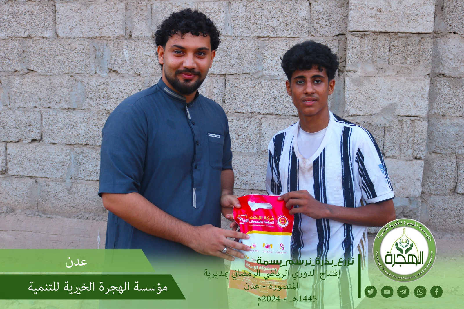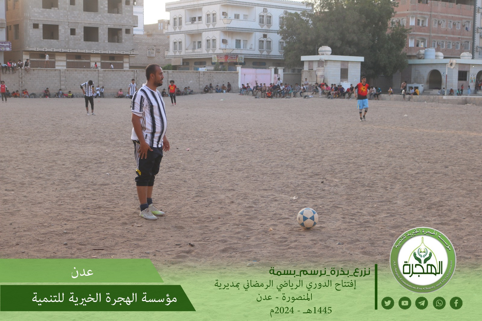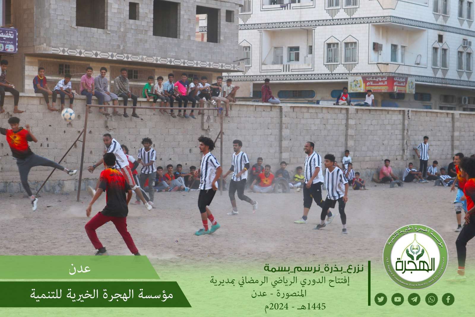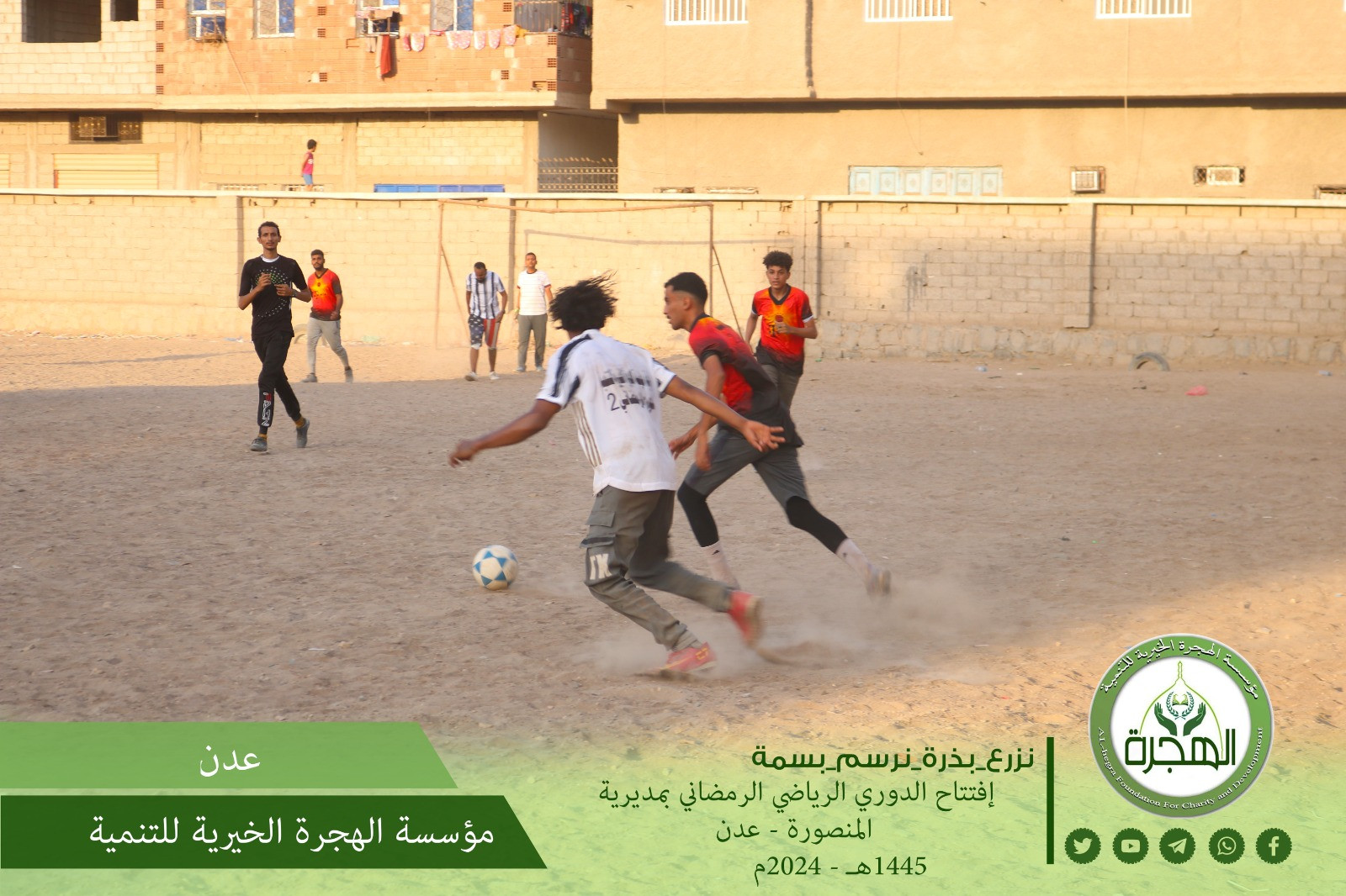 بدعم ورعاية من مؤسسة الهجرة الخيرية للتنمية ، افتتحت على أرضية ملعب مدرسة محمد هاشم بحي ابو اليمامة بمديرية المنصورة بالعاصمة عدن فعاليات الدوري الرمضاني لكرة القدم .