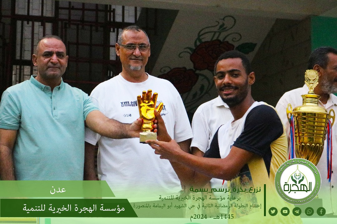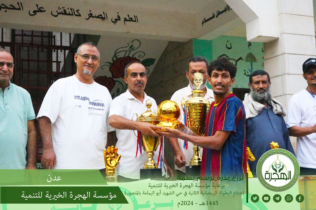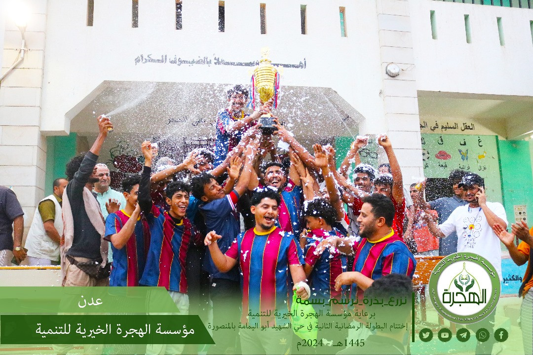 اختتم عصر يوم الأحد ٢١ رمضان ١٤٤٥هـ ، الموافق 31 مارس 2024م، الدوري الرياضي الرمضاني للفرق الشعبية بحي أبو اليمامة بمديرية المنصورة ، برعاية كريمة من مؤسسة الهجرة الخيرية للتنمية، وقد كان افتتاح هذه البطولة منذ مطلع شهر رمضان المبارك ، وذلك لخلق روح المحبة والألفة بين ابناء الحي، وبث روح التعاون فيما بينهم. وجاء النشاط الرياضي اهتماما من مؤسسة الهجرة بفئة الشباب وحفظ اوقاتهم بما ينفع، وصقل مواهبهم ورغاباتهم،