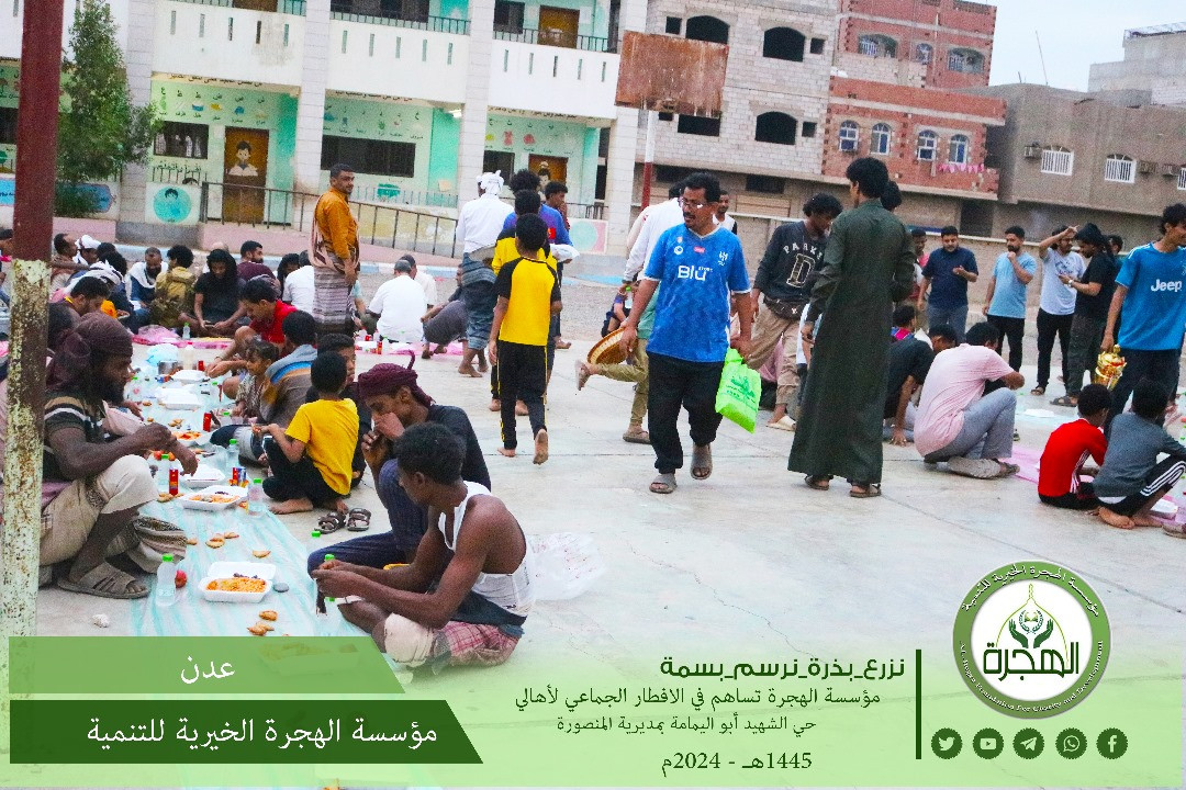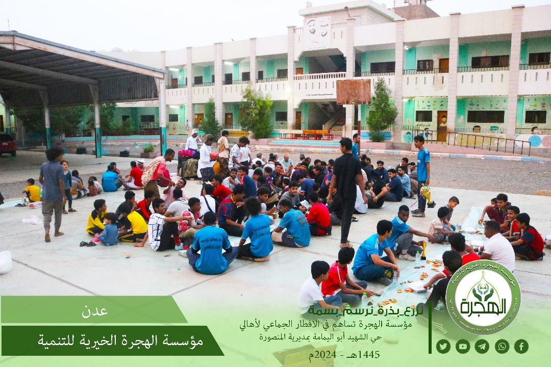 الجدير بالذكر أن مؤسسة الهجرة ساهمت بتوفير وجبات إفطار وإشباع صائم في مائدة الإفطار الجماعي الذي نظمه أهالي حي أبو اليمامة.