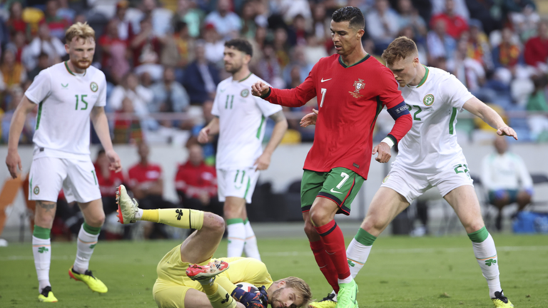 وجاء هدف رونالدو في الدقيقة 49 بعدما تسلم كرة عالية داخل منطقة الجزاء، ليروضها ببراعة قبل أن يتلاعب بمدافع إيرلندا ويسدد كرة متقنة بيسراه على يمين الحارس.