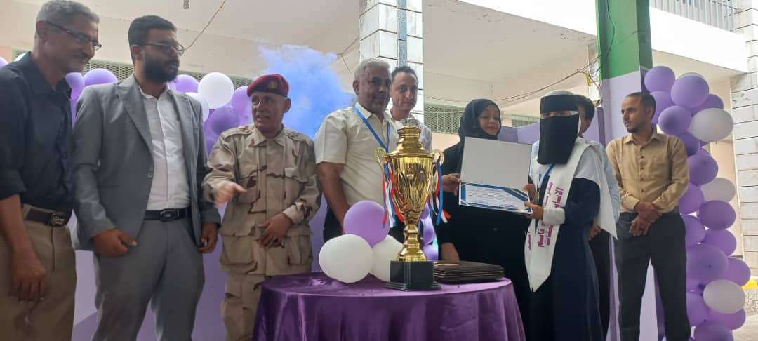 مديرية الضالع تشهد حفل تكريمي لفريق طالبات صالح قاسم بطل المسابقة الا منهجية
