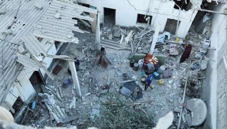 فلسطينون داخل منزل دمرته الحرب في غزة - رويترز