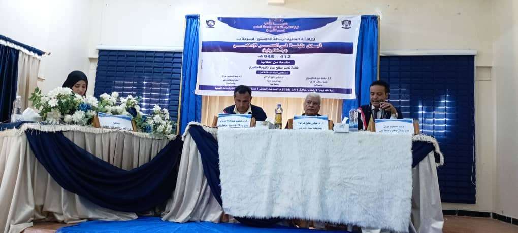 عقدت صباح يوم الأربعاء الموافق 11 سبتمبر 2024م في قاعة الدراسات العليا بكلية الاداب المناقشة العلنية لرسالة الماجستير المقدمة من الطالبة فائدة ناصر صالح فلهوم الكثيري الموسومة بقبائل دثينة في العصر الإسلامي للفترة من 412-945ه