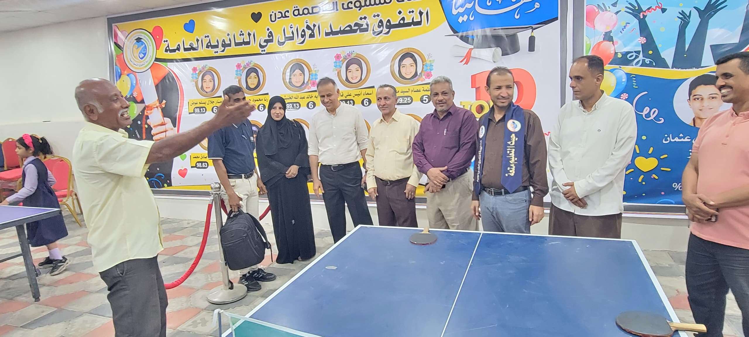 حضر التدشين الأستاذة حنان منصور مدير مكتب التربية والتعليم بالمديرية وعبد الناصر عماد نائب المدير العام والاستاذ ياسر محفوظ مستشار مدير المديرية لشؤون التربية والتعليم وممثلين عن الهئية الادارية لنادي شمسان الرياضي وعدد من رؤساء الأقسام في مكتب التربية بالمعلا