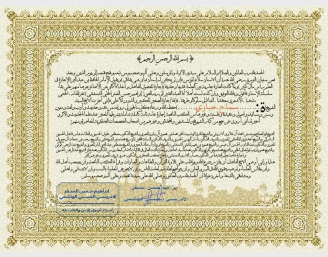 والجدير بالذكر أن هذه الإجازة لا تُعد مجرد شهادة تقليدية، بل هي سلسلة علمية موثوقة تمتد بأسانيدها الذهبية عبر عصور متعاقبة لتصل إلى النبي محمد صلى الله عليه وسلم، مما يضفي على هذا التكريم قدسية فريدة ومكانة رفيعة، ويجعل من حصول الدكتورة سماح جباري عليها وسام شرف علمي يُعبر عن عمق علمها ورسوخها في ميادين العلوم الشرعية.