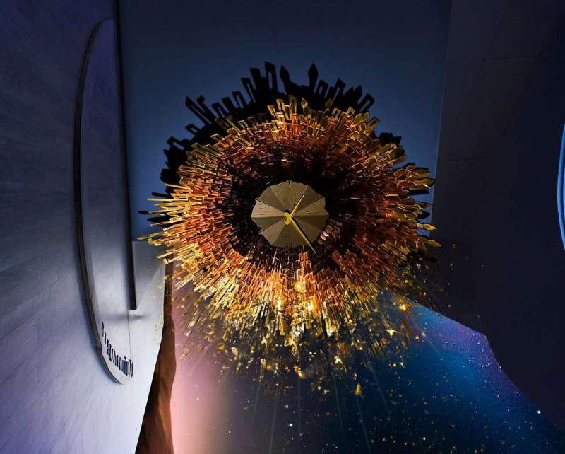 ولقد أذهل أمجد الحاج زوار المعرض بتحفه الفنية التي تتسم بالبساطة العميقة، معبرة عن تفاعل فريد بين الفن والعلم. فعلى سبيل المثال، ساعة “بيغ بانغ” التي تمثل مزيجًا بين الفن وعلم الفضاء، مستوحاة من الانفجار الكوني الذي أسس الكون. أما ساعة “سيبرنوفا”، فتعكس مشهد انفجار نجم.