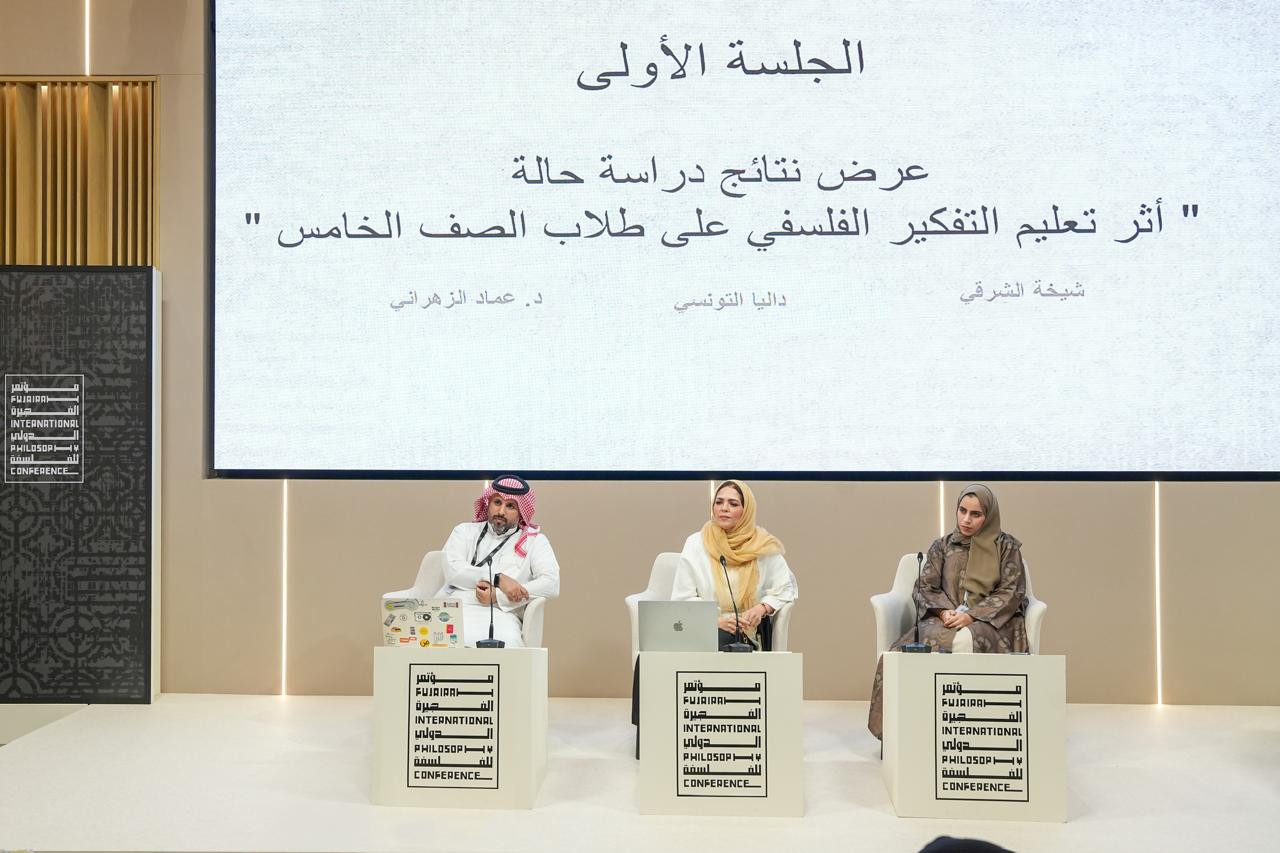 ثم عرض نتائج دراسة حالة "أثر تعليم التفكير الفلسفي على طلاب الصف الخامس" خلال جلسة أداراتها شيخة الشرقي مسؤل مبادرات مركز الطفل ببيت الفلسفة ، واستعرضت النتائج داليا التونسي المؤسس والمدير التنفيذي لمعهد بصيرة بالمملكة العربية السعودية والدكتور عماد الزهراني الحاصل على دكتوراة أصول التربية ودبلوما الفلسفة ومناهج