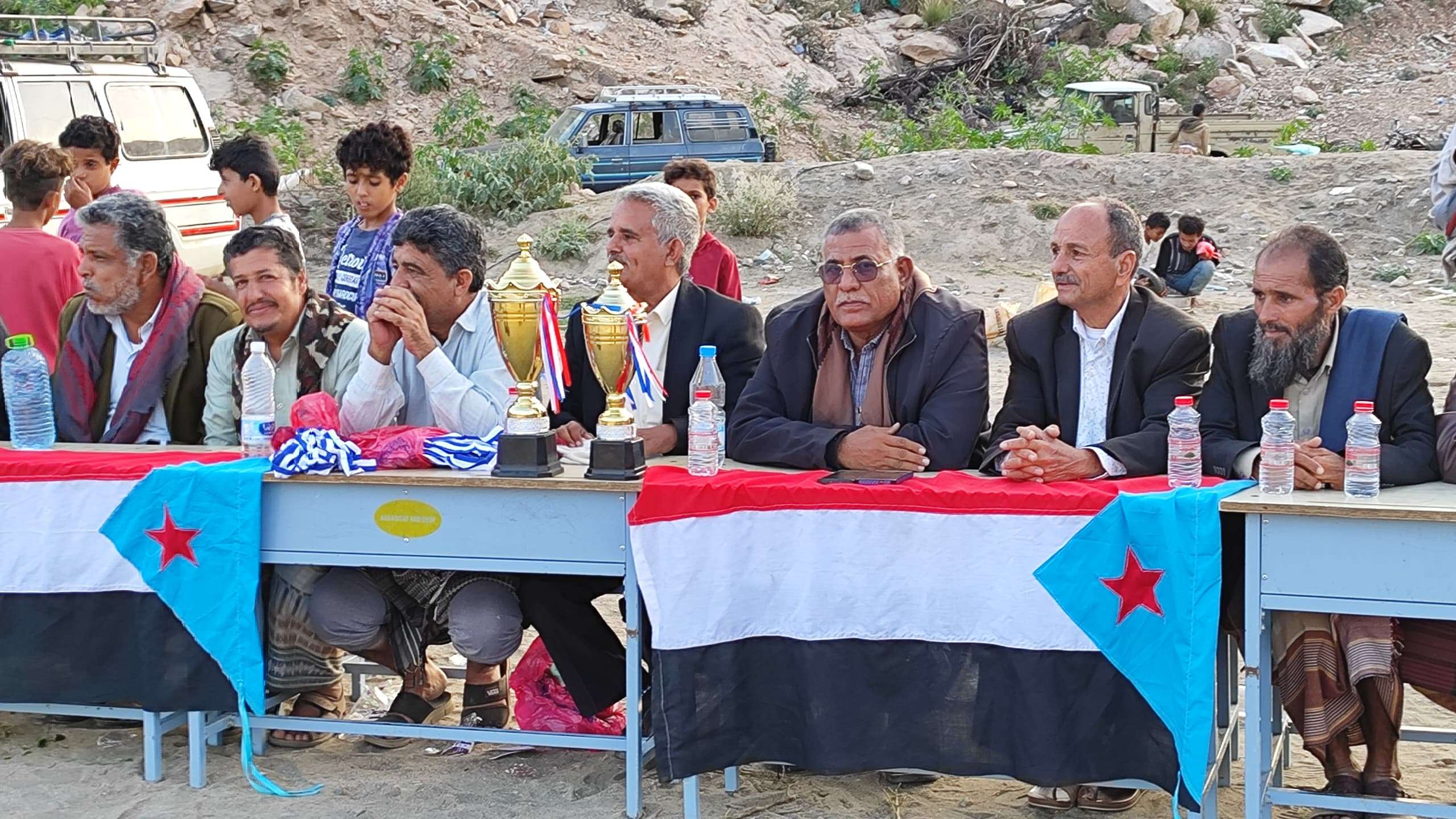 الشيخ عادل الجردمي، رئيس نادي يافع، عادل ناصر بن عبادي، نائب رئيس نادي يافع، الاستاذ فضل الحربي، مدير مكتب الإعلام رصد، محسن الوعلاني، عضو المجلس المحلي رصد، عبدالفتاح أحمد شيخ، عضو القيادة المحلية بانتقالي أبين، ومحسن الغزغزي مدير الاداراة التنظيمية بالمجلس الانتقالي رصد، منصور الوعلاني، نائب رئيس إدارة الشباب والطلاب بالمجلس الانتقالي، د. عبدالحكيم مسعود، القائد نشيط الكلدي، ركن عمليات الحزام الأمني رصد، الكابتن خالد طيور، رئيس لجنة الحكام والإعلامي ملهم العفيفي، إلى جانب حضور جماهيري كبير من عشاق كرة القدم، وسط أجواء رياضية حماسية تجسد روح الأخوة والاحتفال بعيد الاستقلال