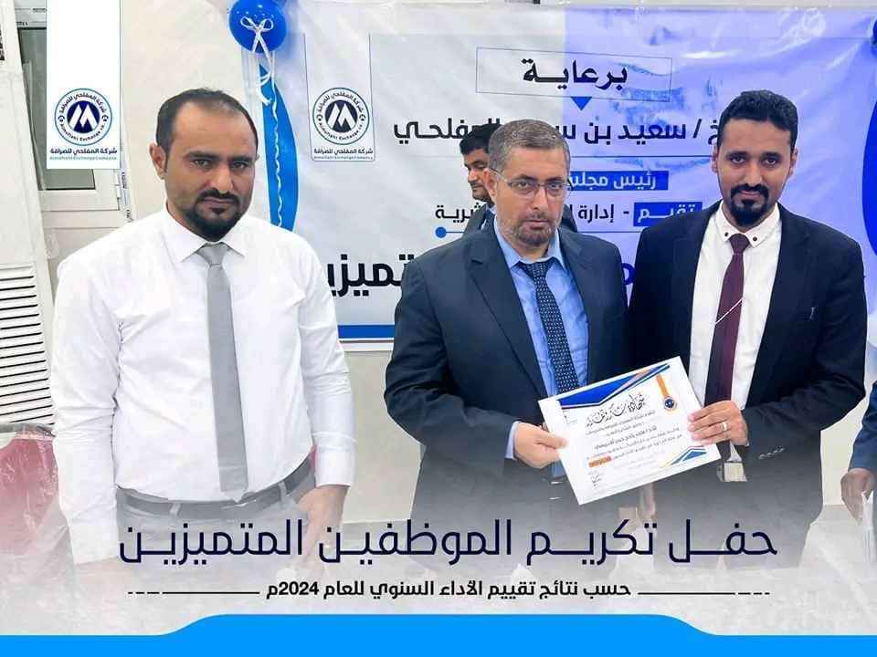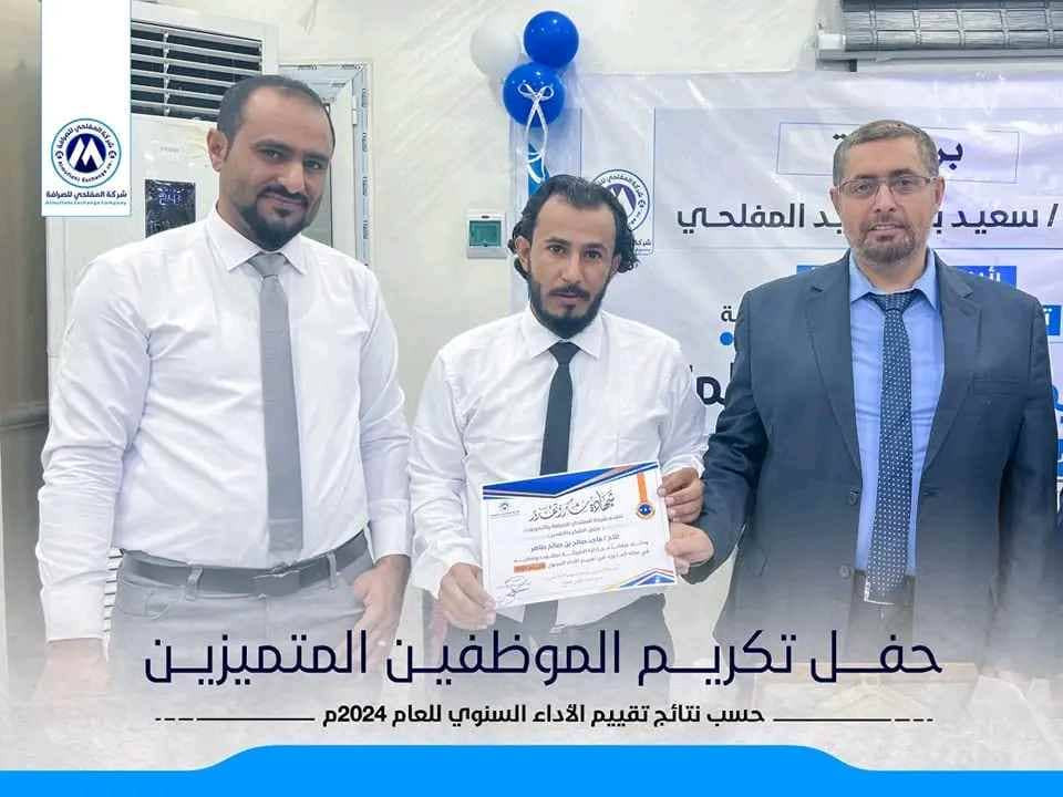 تكريم الموظفين المتميزين ورئيس مجلس الإدارة بشركة "المفلحي للصرافة والتحويلات" لعام 2024