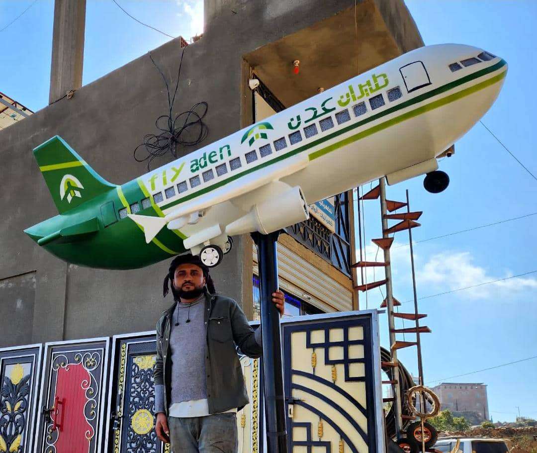 الآلاف من النشطاء يتداولون صور لصناعة مجسم طائرة لشركة طيران عدن أبدع فيه شاب من ابناء يافع