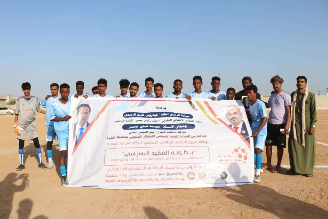 انطلقت عصر أمس الثلاثاء منافسات النسخة السادسة من بطولة الفقيد البسيسي ، التي ينظمها فريق التحالف الرياضي ، برعاية القائد عيدروس بن قاسم الزٌبيدي ، رئيس المجلس الانتقالي الجنوبي نائب رئيس مجلس القيادة الرئاسي ، ومعالي الأستاذ محمد علي ياسر ، محافظ محافظة المهرة، وبدعم من القيادة المحلية للمجلس الانتقالي الجنوبي بالمهرة ، وتحت إشراف نادي خيبل ، وبالتنسيق مع مكتب الشباب والرياضة في مديرية الغيضة .