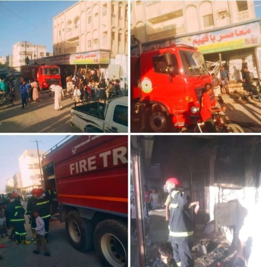 فرق الإطفاء تخمد حريقًا في طواحين باقهيم بعتق دون خسائر بشرية