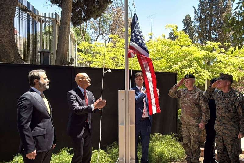 وجاءت تصريحات باراك بعد رفعه الخميس بحضور وزير الخارجية السوري أسعد الشيباني العلم الأميركي في دار سكن السفير الأميركي في دمشق، القريب من مقر السفارة.