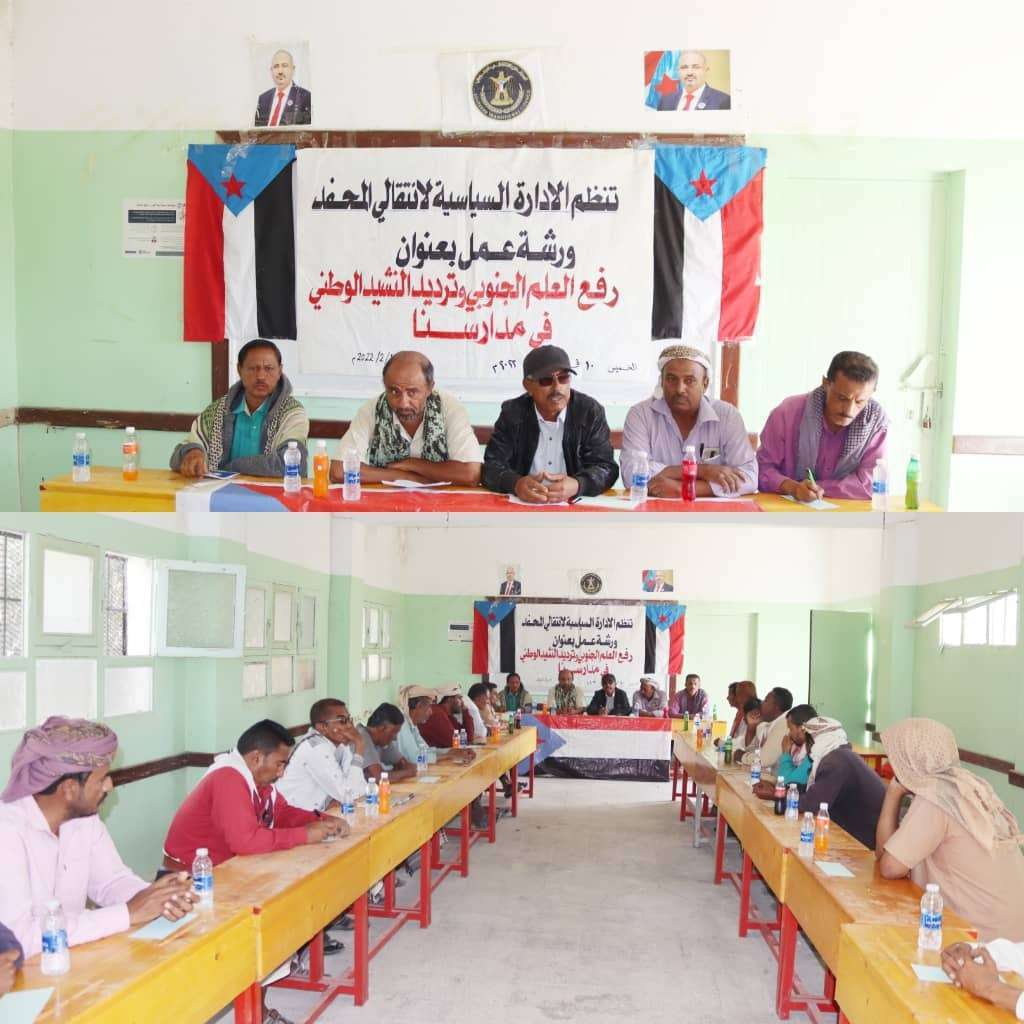سياسية انتقالي #المحفد بـ #أبين تنظّم ورشة عمل بعنوان " رفع العلم الجنوبي وترديد النشيد الوطني في مدارسنا "