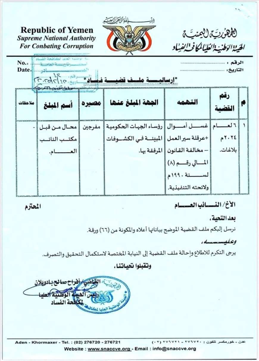 كشفت الهيئة الوطنية لمكافحة الفساد في تقرير رسمي حديث عن فضيحة مالية وإدارية مدوية، حيث أكدت أن 204 مؤسسة حكومية في اليمن لا تقوم بتوريد إيراداتها إلى البنك المركزي كما يُفترض قانونيًا، الأمر الذي يضع علامات استفهام كبرى حول حجم الفساد المستشري داخل مؤسسات الدولة وآلية إدارة المال العام.
