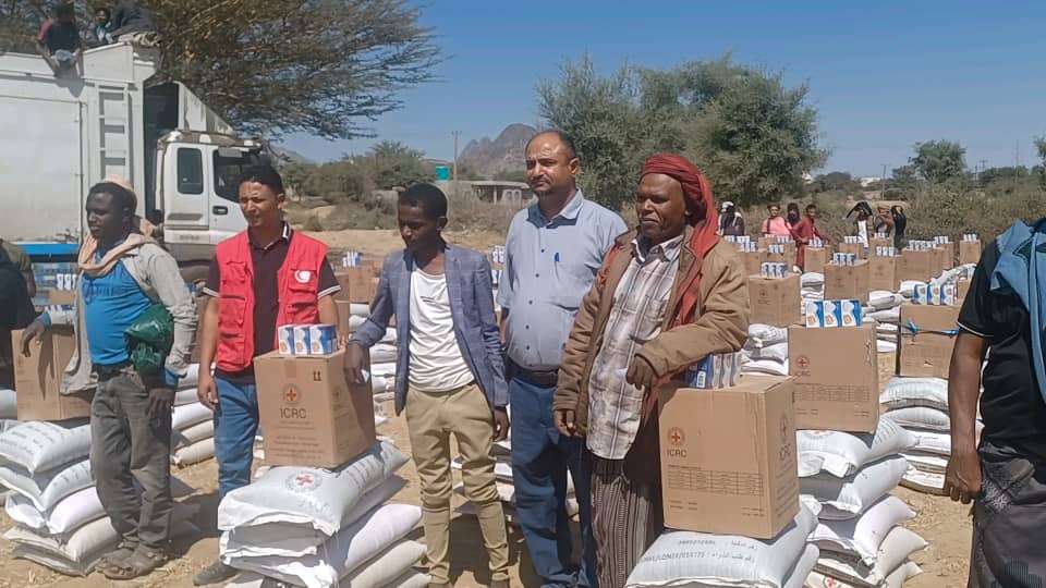 بدعم من اللجنة الدولية للصليب جمعية هلال الضالع توزع سلال غذائية بمديرية الضالع
