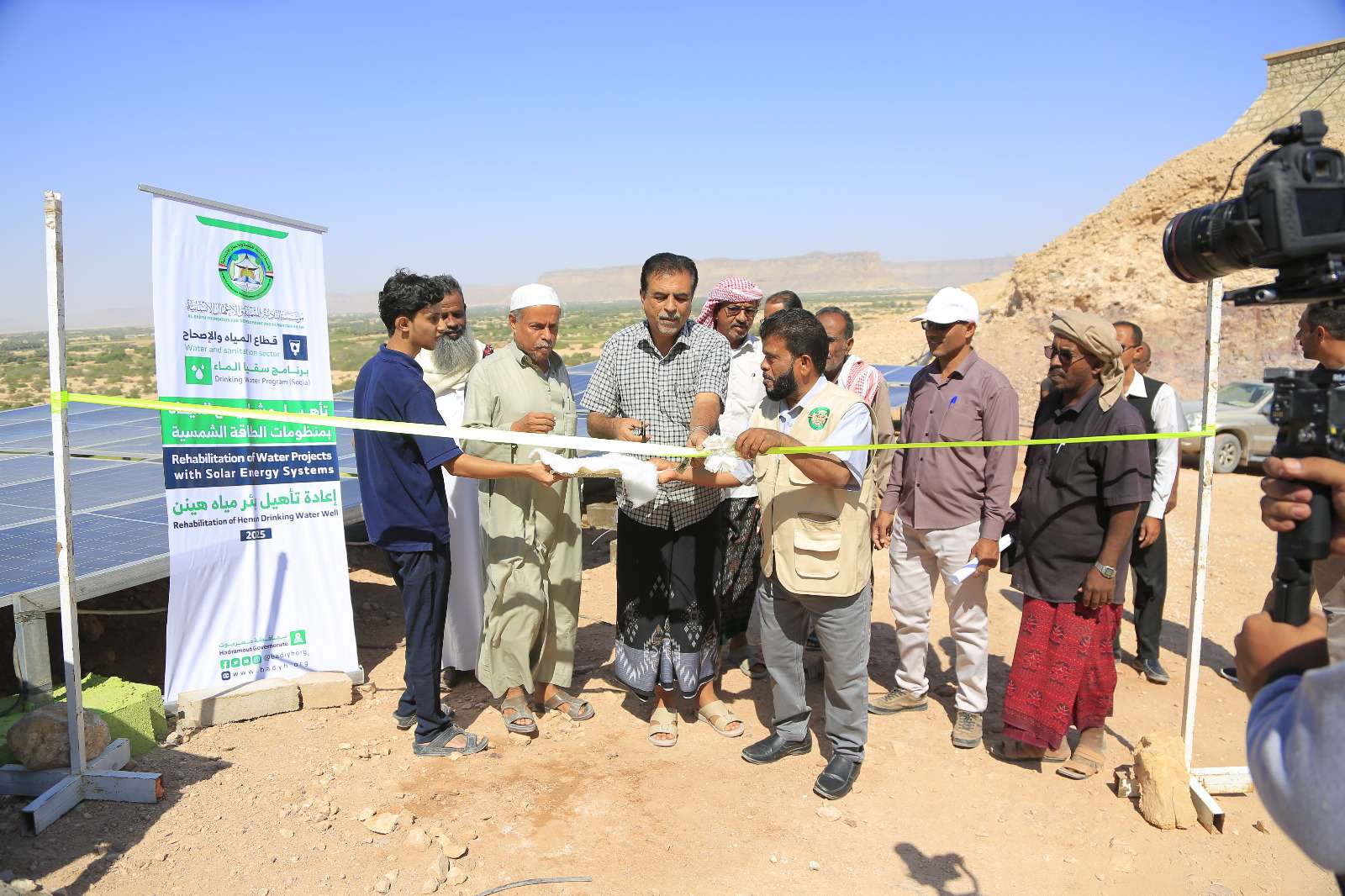 “تدشين ربط بئر المياه التي تغذي مناطق هينن بالطاقة الشمسية النظيفة ونشكر فاعل الخير ومؤسسة البادية على هذا الإنجاز.”