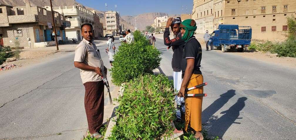 وأكد الاخ عماد بن حمد بلحامض مدير وحدة النظافة والتحسين بالمديرية بأن تقليم الأشجار من الأعمال المهمه وذات الاهمية الكبيرة والتي تهدف لإظهار المظهر الجمالي للمدينة و ضمن خطط وبرامج التي تنفيذها الوحدة و ايضاً ضمن الاستعدادات لموسم زيادة الهدار لهذا العام و هناك حملات واسعة لتنظيف الشوارع و الطرقات العامة و تجميل المديرية شكل رائع .
